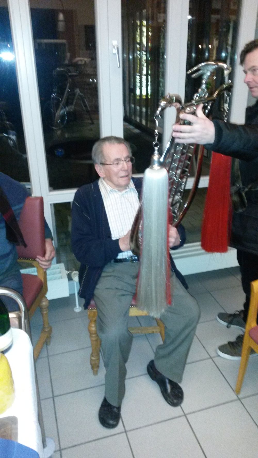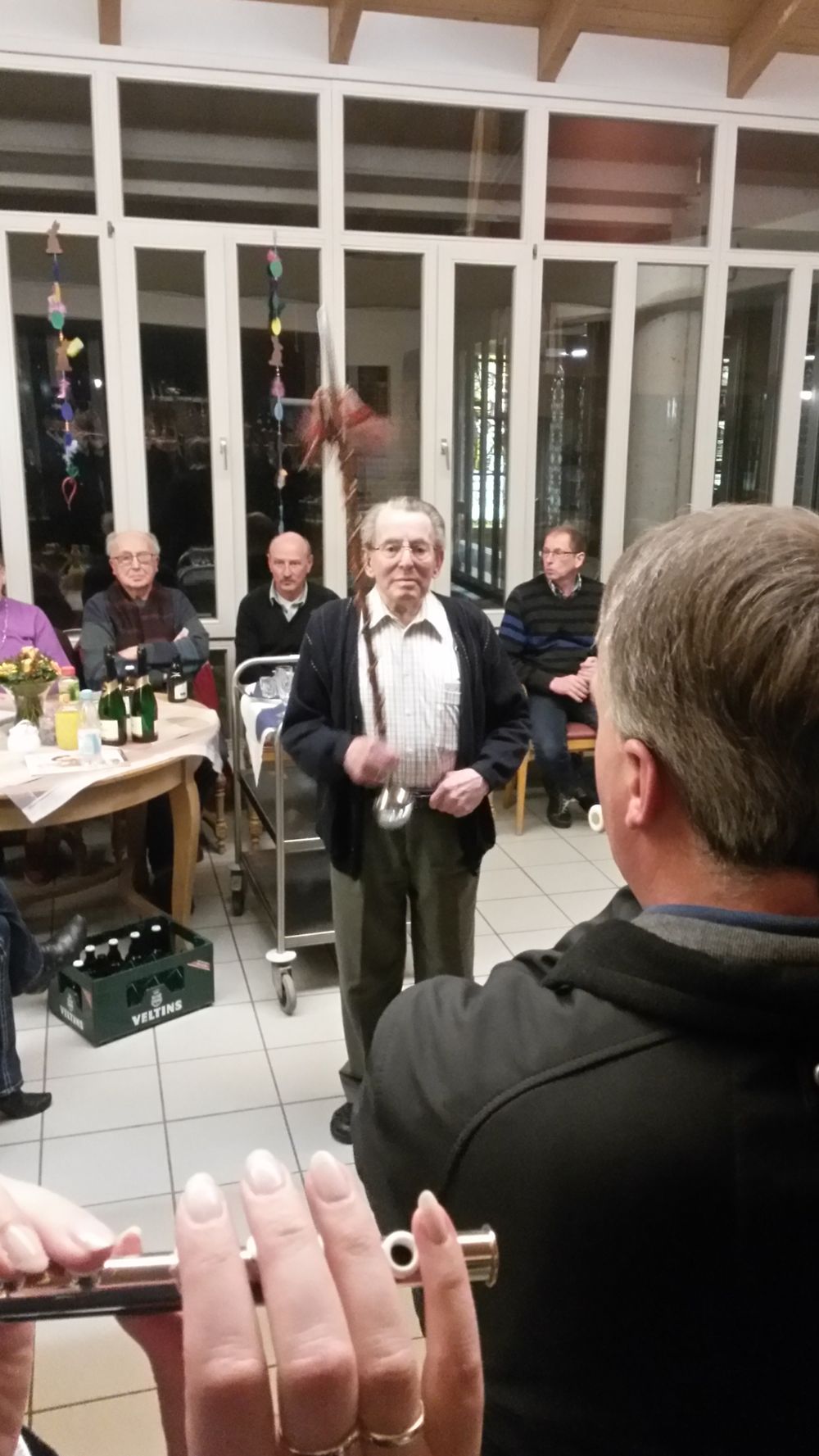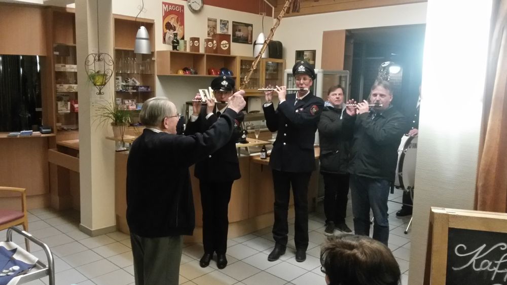 An seinem 95. Geburtstag überraschte der Spielmannszug, ihr langjähriges Mitglied Johannes Gemsa mit einem Ständchen. Neben den Glückwünschen ernannten sie ihm zum Ehrenmitglied und Martin Osterkamp überreichte die Urkunde. Natürlich ließ Hans Gemsa es sich nicht nehmen und versuchte sich an seinem alten Instrument, der Lyra und zeigte das er nichts verlernt hatte. Auch am Tambourstab zeigte der Jubilar sein können.