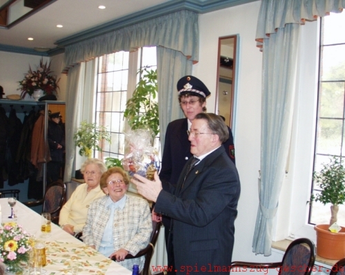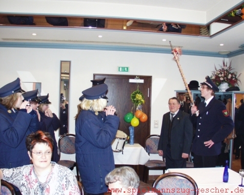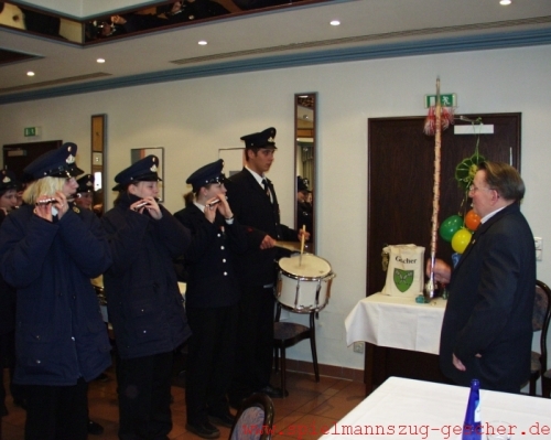 ein beliebter „Lehrer“. Auch heute noch lässt sich Gemsa immer wieder bei den verschiedensten Veranstaltungen des Spielmannszuges sehen. Wie sehr er mit den Spielleuten verbunden ist, wurde bei seinem Jubiläum deutlich. Prompt nahm er Tambourmajorin Andrea Meyer den Tambourstab aus der Hand und ließ die Musikanten „nach seiner Mütze“ spielen.