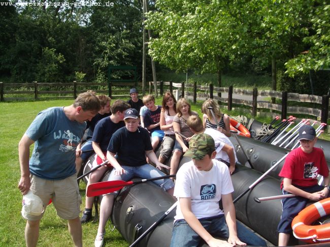 Der Vorstand organisierte eine Lustige Bootsfahrt auf der Lippe. Von Schermbeck ging es per Muskelkraft ca. 11 Km die Lippe Strom abwärts. Das Bild zeigt uns bei der Trockenübung, wir bekamen die Einweisung für das Boot. Bei Sommerlichem Wetter und guter Laune ist es kein Wunder das nur ganz wenige wirklich Trocken geblieben sind.
