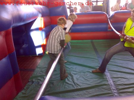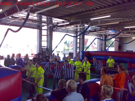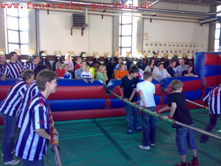 Bestandteil auf dem Dienstplan ist das interne Fußballturnier der Feuerwehr Gescher. In diesem Jahr konnten die Organisatoren erstmalig einen Menschenkicker dafür besorgen. Kurzer Hand wurden die Familienangehörigen der Kameraden sowie die Mitglieder des Spielmannszuges eingeladen. Aufgeteilt in mehreren Gruppen konnten alle beteiligten und Zuschauer spannende Spiele verfolgen. Am ende setzte sich eine Gruppe der Feuerwehr gegen die Auswahl der Jugendfeuerwehr durch und konnten das Finalspiel gewinnen.