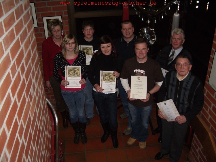 Zu unserer diesjährigen Generalversammlung trafen sich zahlreich alle Aktiven und Passiven Mitglieder am 15.12.2007 im Gerätehaus. Andrea Meyer hielt einen kurzen Rückblick über das abgelaufene Jahr und bedankte sich bei den Spielleuten für die gute Unterstützung bei allen Terminen. Nachdem Yvonne Beeke das Vorjahres Protokoll verlesen hatte, gab Monique Dieks den Kassenbericht bekannt. Die Kasse wurde in diesem Jahr von Andre Schepers und Nicole Nieland geprüft und für gut geführt befunden. Somit konnte M. Dieks (Kassenführer) und der Vorstand durch die Versammlung entlastet werden.