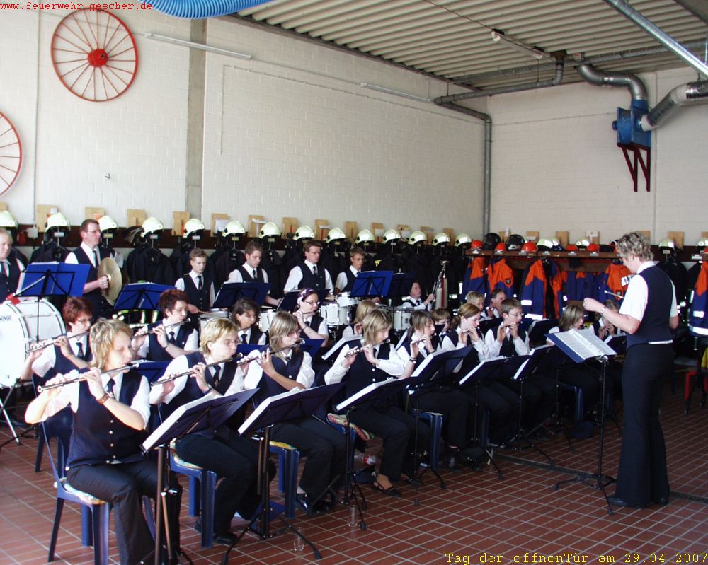 Am 29.04.2007 lud die Feuerwehr Gescher zum Tag der offenen Tür, damit die Besuch einmal hinter die Kulissen schauen konnten. Zu diesem Anlass verlegten wir unser Übungsstunde und verbreiteten Musikalisch Stimmung.