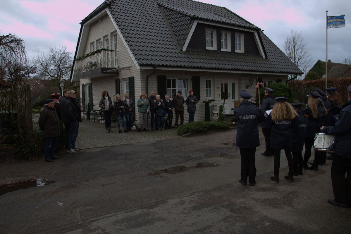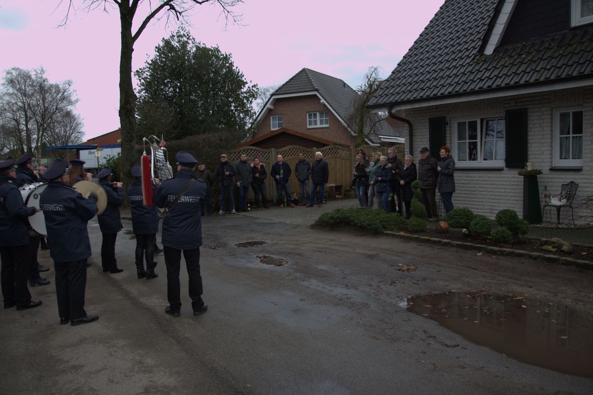 An den einzelnen Stationen wartet jedes Jahr ein herzlicher Empfang, wie zum Beispiel bei Familie Auling, wo einige Nachbarn der Nachbarschaft Feldschulten auf den Besuch der Musiker warten um gemeinsam mit einem Glühwein anzustoßen. Herzlich werden die Musiker auch bei unserem Bürgermeister Thomas Kerkoff, seiner Familie und Freunden empfangen. Spendierte er doch nach den Glückwünschen frische Berliner, heißen Kakao und Glühwein.